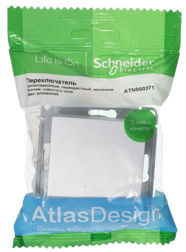 Выключатель одноклавишный перекрестный Schneider Atlasdesign 10А, алюминий ATN000371