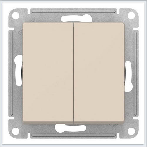 Выключатели Schneider Electric AtlasDesign Выключатель 2-клавишный, 10АХ, Бежевый Арт. ATN000251