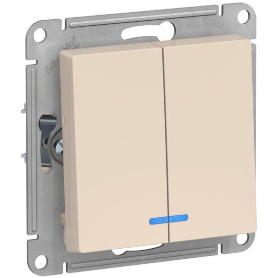 Выключатель Выключатель 2-клавишный с подсветкой SCHNEIDER ELECTRIC ATLASDESIGN, сх.5а, 10АХ, механизм, бежевый