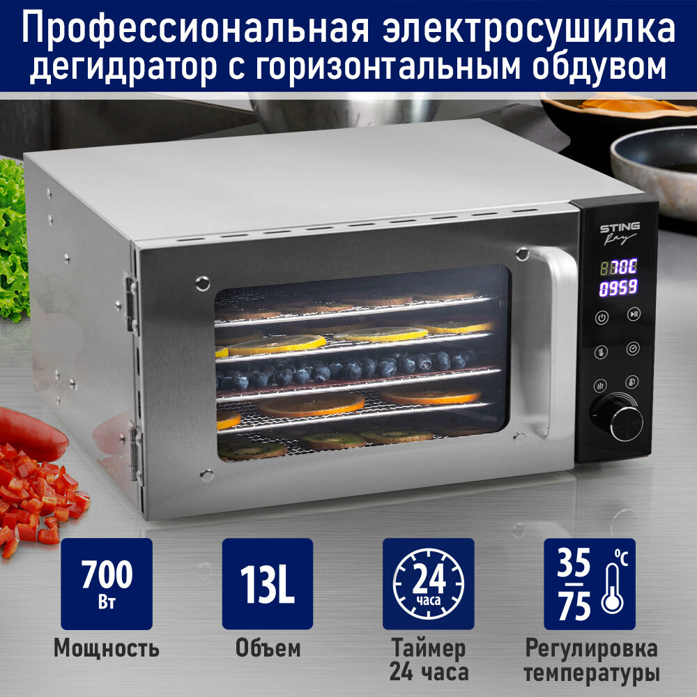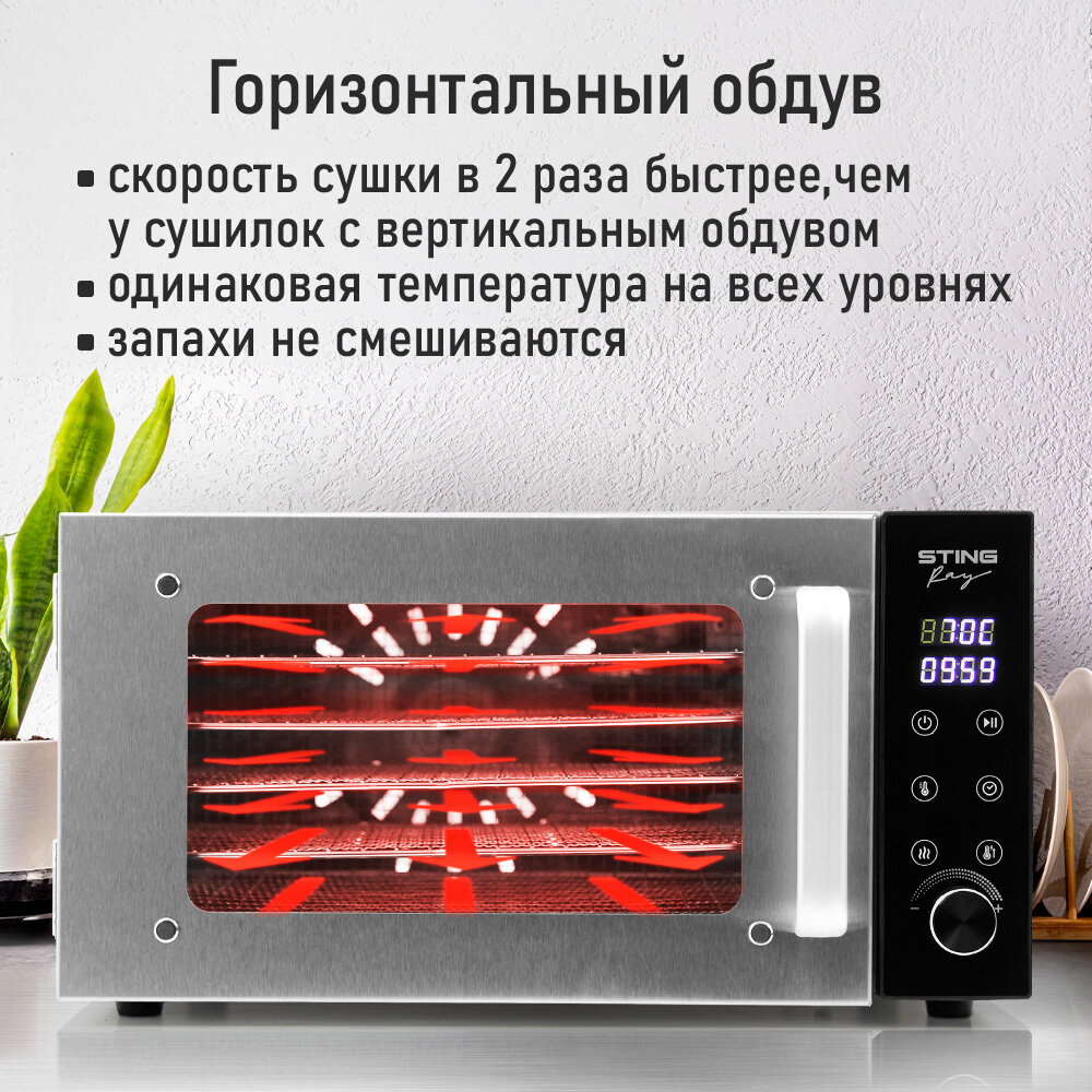 Сушилки фруктов Дегидратор сушилка для овощей электросушилка STINGRAY ST-FD709A профессиональная с горизонтальным обдувом 6 поддонов черный