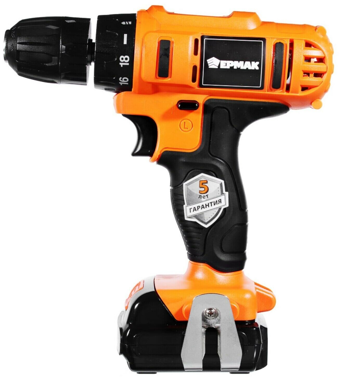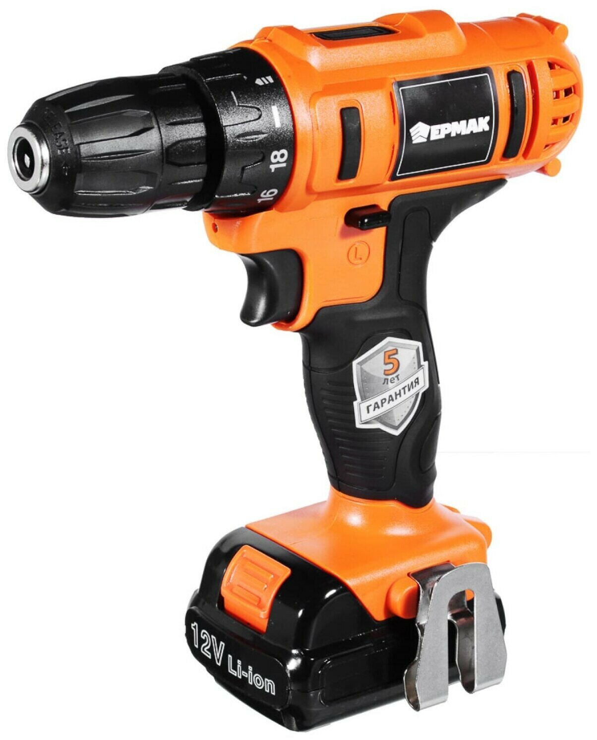 Ермак Дрель-шуруповерт, аккумуляторная ДША-12В /1,3Ач/Li-Ion/ 18 Н*м/18+1 скор/1аккум/коробка