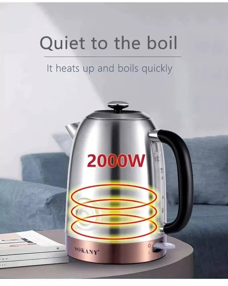 Электрочайники Электрический чайник Sokany, 1,7 л, нержавеющая сталь , защита от перегрева и с термометром