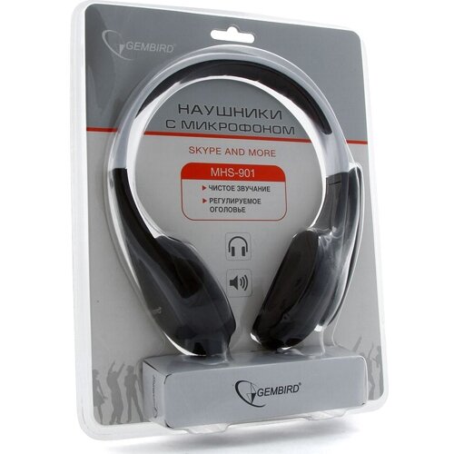 Лучшие цены. Наушники с микрофоном Gembird MHS-901 - это полноразмерная компьютерная гарнитура с проводным подключением через аудио-интерфейс 3.5 мм. Микрофон и наушники подключаются раздельно с помощью 3-контактных разъёмов jack 3.5мм. Гарнитура оснащена чувствительным микрофоном и качественными наушниками с мягкими накладками, которые закреплены на регулируемом оголовье. Наушники обеспечивают полноценное объёмное звучание в широком частотном диапазоне от 20 до 20000 герц. Магазины в вашем городе.