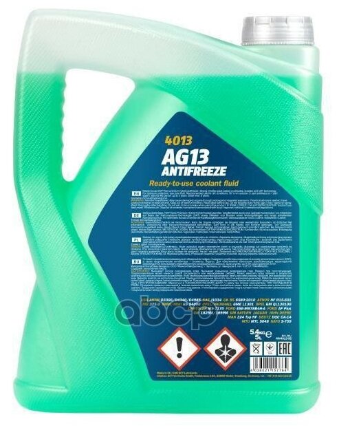 4013 MANNOL ANTIFREEZE HIGHTER AG13 5 л. Готовый раствор охлаждающей жидкости зеленый