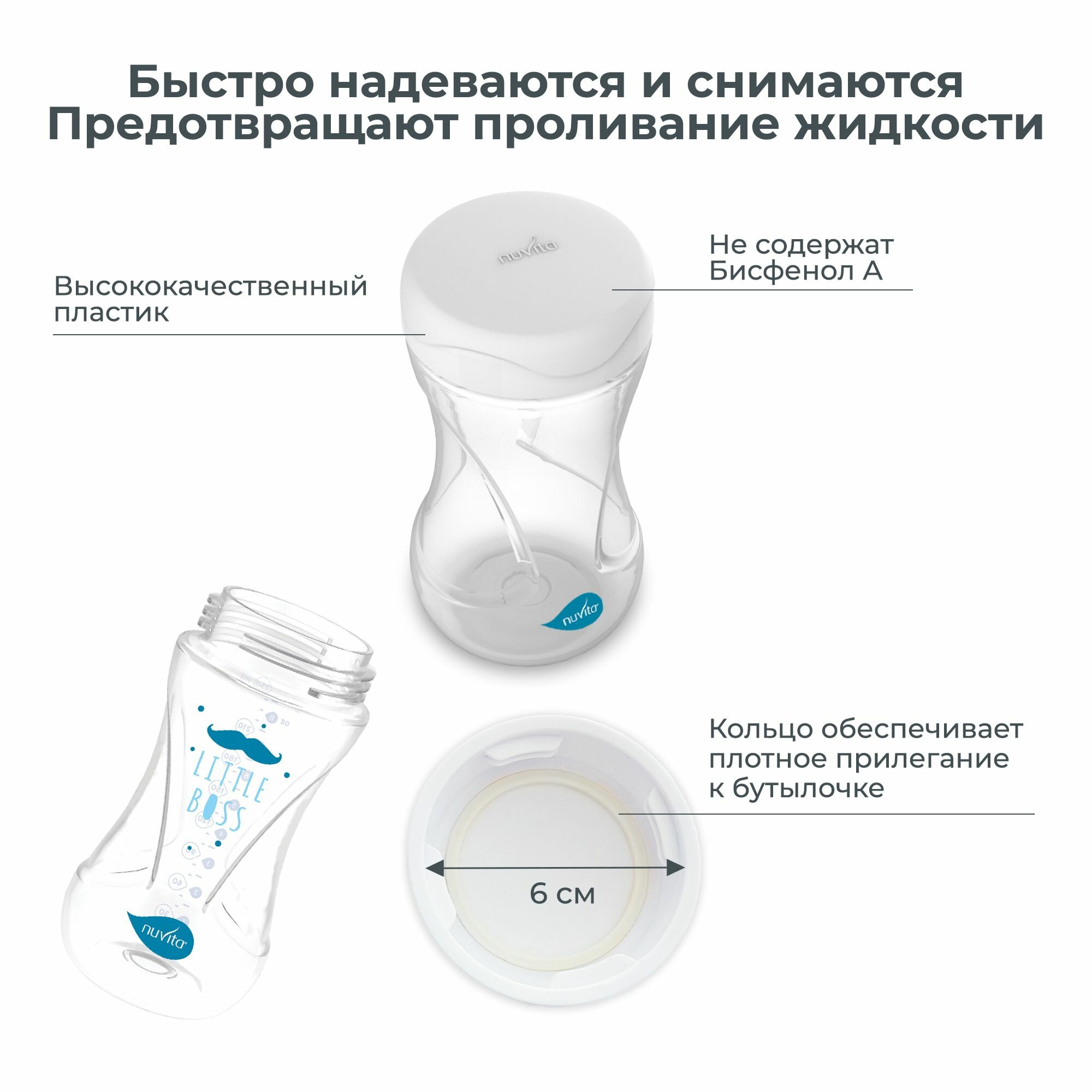 Бутылочки и поилки Крышки для детских бутылочек Nuvita Bottle Travel Cap, пластиковые, 2 шт.