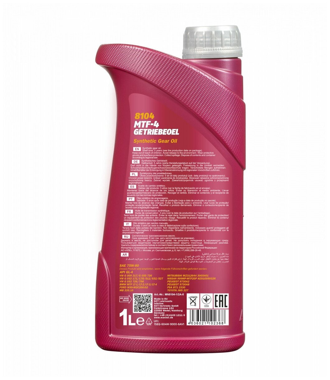 8104-4 Mannol Mtf-4 Getriebeoel 75w80 Синтетическое Трансмиссионное Масло 75w80 Gl-4 4л MANNOL арт. MN8104-4
