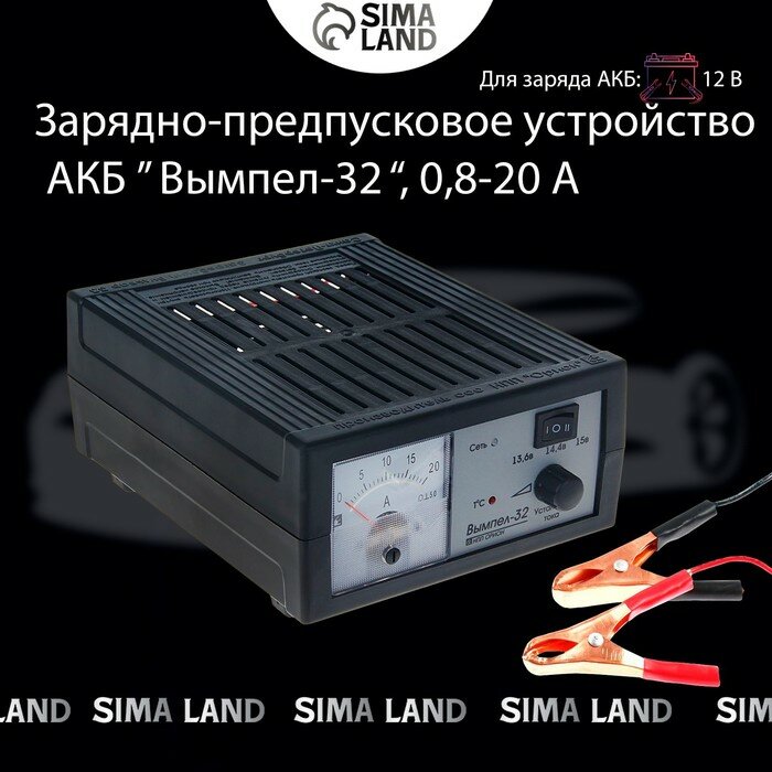 Лучшие цены. Зарядно-предпусковое устройство «Вымпел-32» отлично справляется с поставленными задачами. Подходит для заряда 12-ти вольтовых автомобильных, лодочных, тяговых, гелевых и мотоциклетных аккумуляторных батарей. Двойная защита от перегрева и уменьшение тока в конце работы делают модель особенно безопасной в использовании. В случае повышения температуры микровентилятор включается самостоятельно. Силу тока можно регулировать самостоятельно в диапазоне от 0,8 до 20 А. Магазины в вашем городе.
