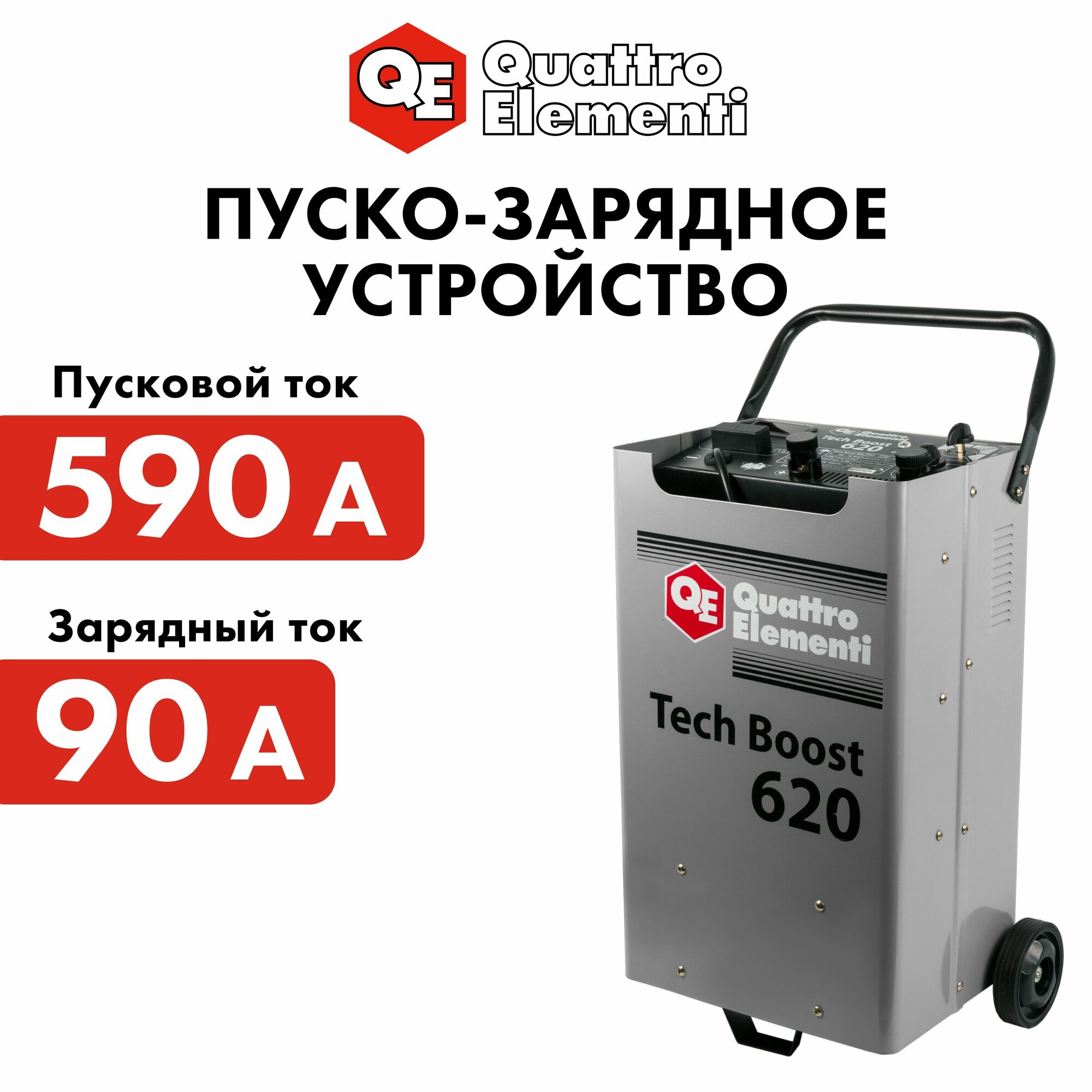 Пуско-зарядное устройство QUATTRO ELEMENTI Tech Boost 620 ( 12 / 24 Вольт, заряд до 90А, пуск до 590 А, таймер, 28 кг)