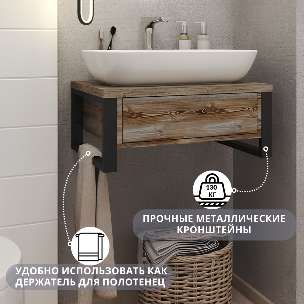 Тумбы под умывальник Тумба под раковину в ванную 1Marka GRUNGE LOFT 60 см Подвесная цвет Дуб Намибия Ц0000001579