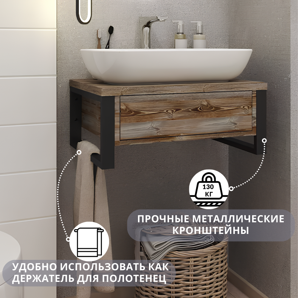 Тумбы под умывальник Тумба в ванную под раковину 1Marka GRUNGE LOFT 70 см Подвесная Дуб Намибия Ц0000015941