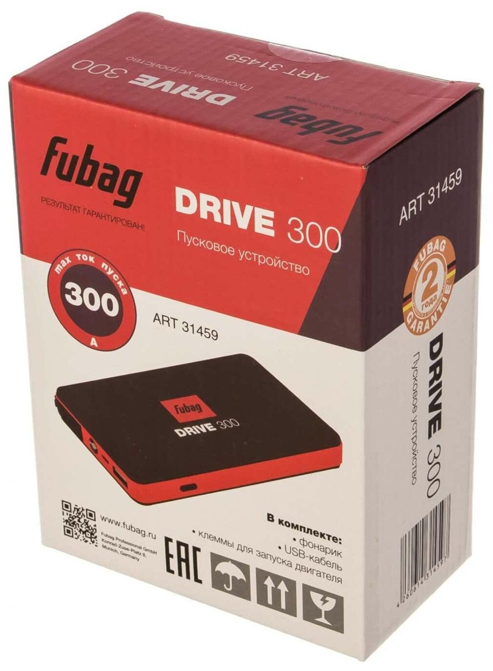 Лучшие цены. Пусковое устройство FUBAG DRIVE 300 ток запуска 300А емкость аккумулятора 6000 мАч 31459 применяется для запуска автомобилей со свинцовым аккумулятором 12 В. Оснащено высокотехнологичной АКБ. Устройство имеет компактный корпус и малый вес. Магазины в вашем городе.