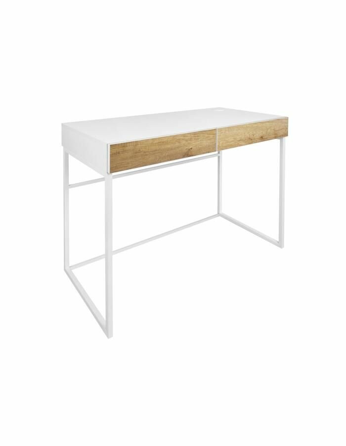Офисные столы Компьютерный, письменный стол Блогер с ящиками, 100х50х75.5 см, Белый / Дуб Каньон / Белый, металлический каркас