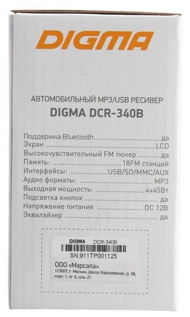 Автомагнитолы Автомобильный CD-ресивер Digma DCR-340B