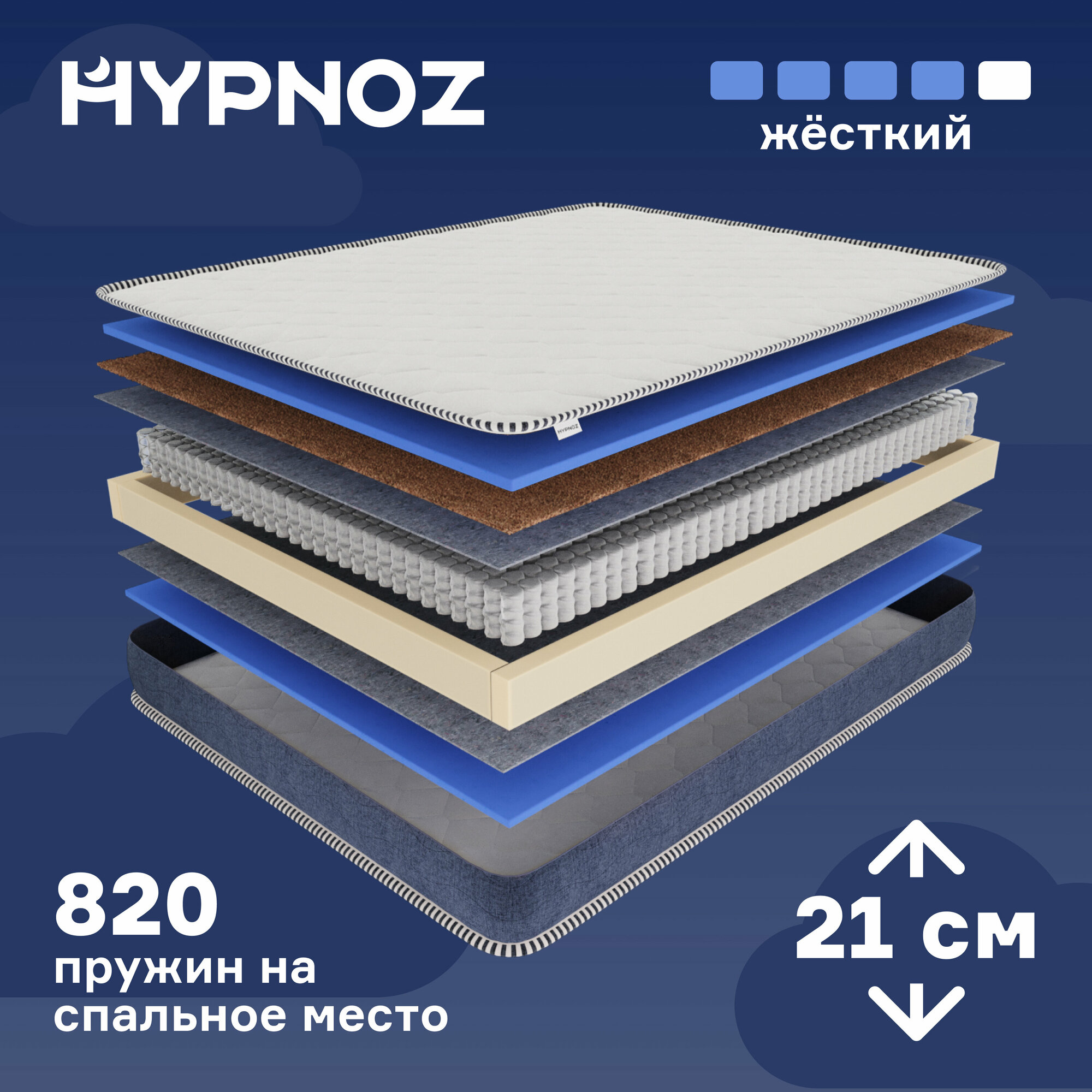 Матрас для двуспальной кровати HYPNOZ Spring Hard, Независимые пружины, 160х200 см 15 900 ₽ Подробнее