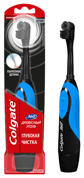 Электрическая зубная щетка Колгейт / Colgate - Электрическая зубная щетка 360 древесный уголь мягкая, цвет: черный