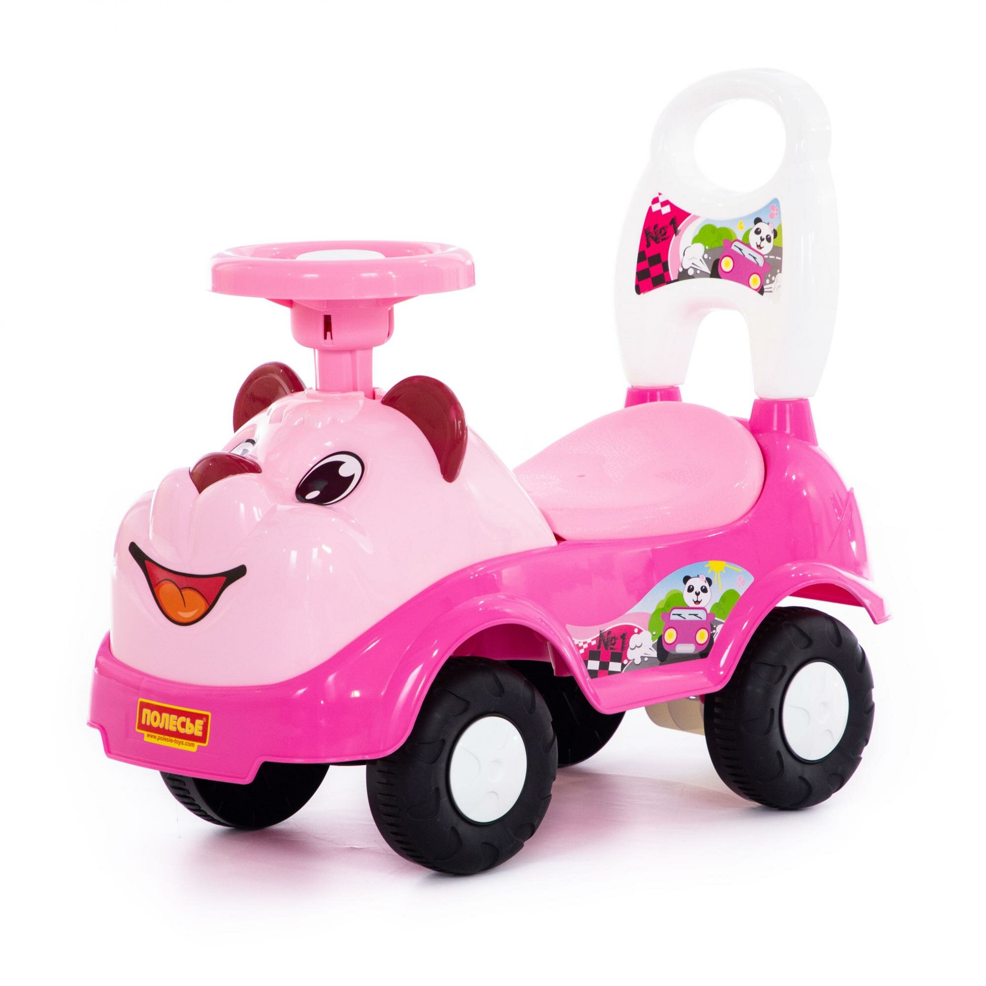 Лучшие цены. Девочкам понравится яркая розовая машинка каталка с мордочкой мишки. Управлять ей очень легко: малышкам надо лишь отталкиваться ножками, чтобы придать таким образом ускорение вращающимся колесам, которые дополнены рельефными покрышками. На руле предусмотрен кларксон. Имеется высокая спинка для поддержки спины. Магазины в вашем городе.