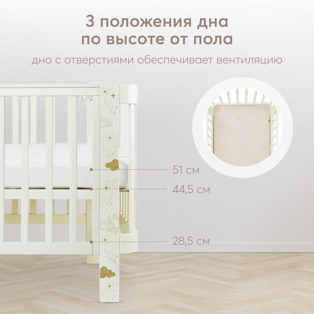 Кроватки 95026, Кроватка для новорожденных трансформер от 0, Happy Baby MOMMY LOVE, с маятником, с расширением, молочная