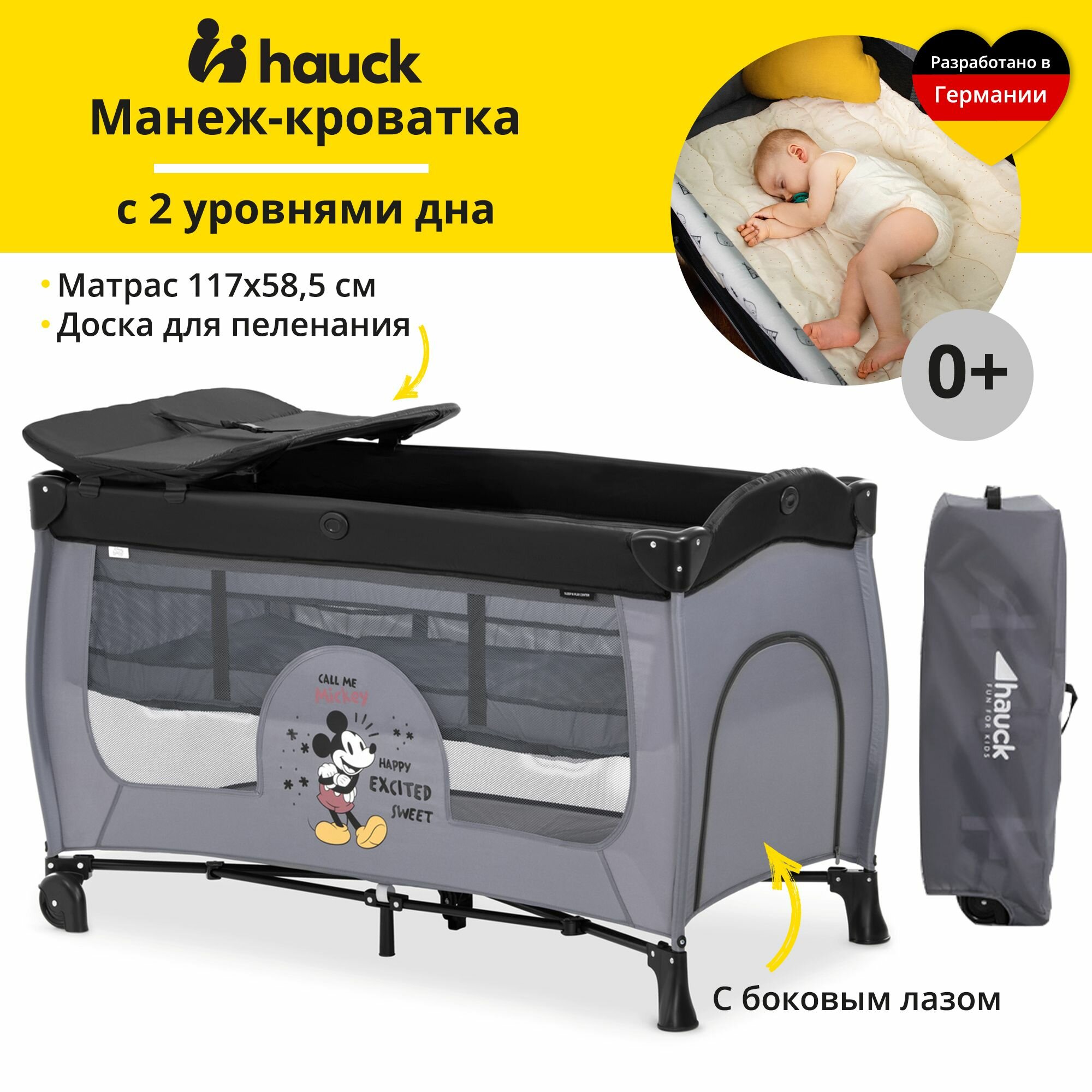 Манежи Манеж - кровать детский Hauck Sleep N Play Center Mickey Mouse Grey, с пеленальной поверхностью, матрасом, боковым лазом и 2 колесиками, складной