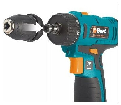 Дрель-шуруповерт BORT BAB-12NX2LI-FK-TWIN 12 В, 1350 об/мин, синий/черный