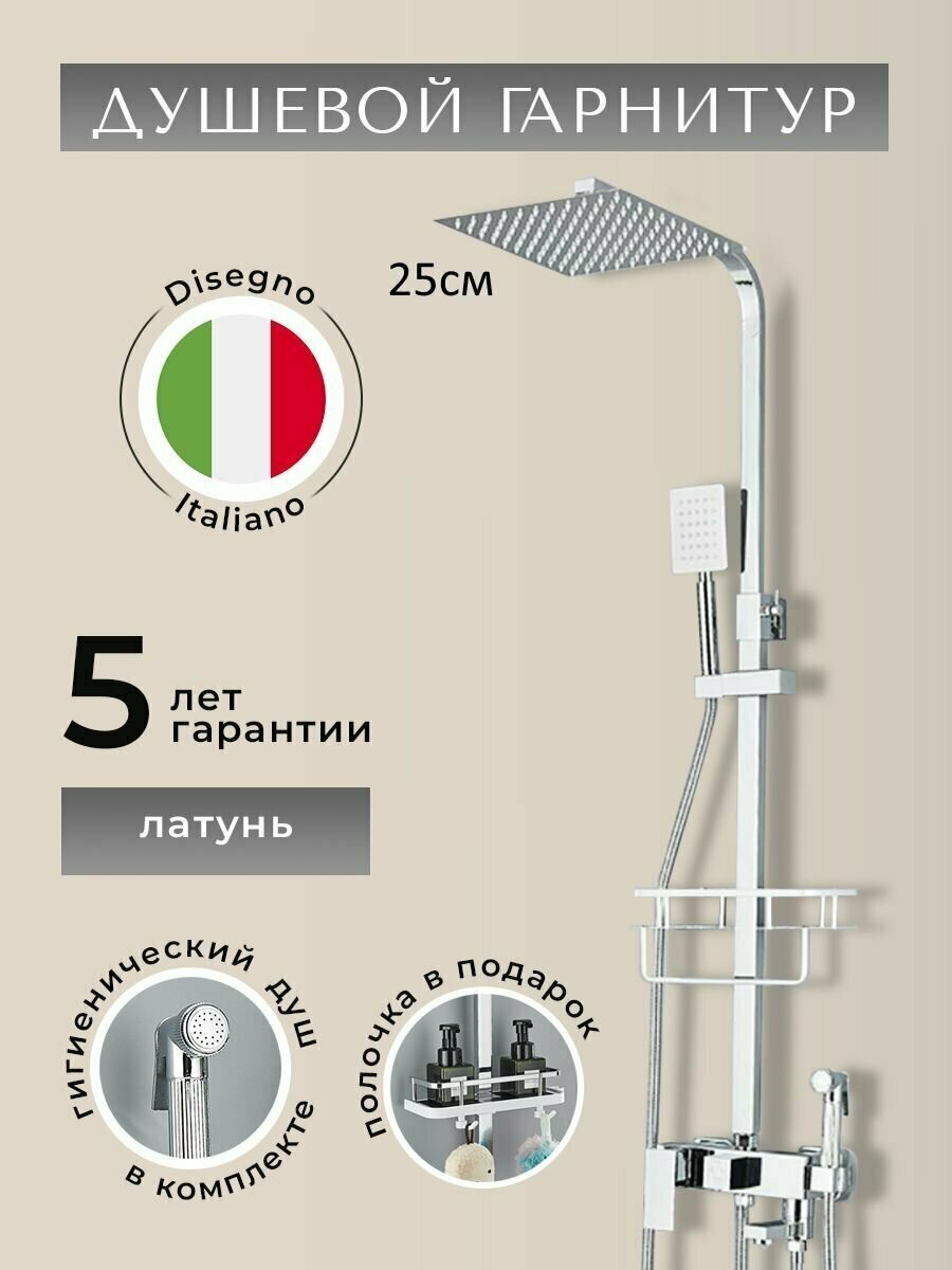 | Комплектация | ручной душ (душевая лейка) / верхний душ (тропический) / стойка / штанга / душевой шланг / крепление ручного душа |