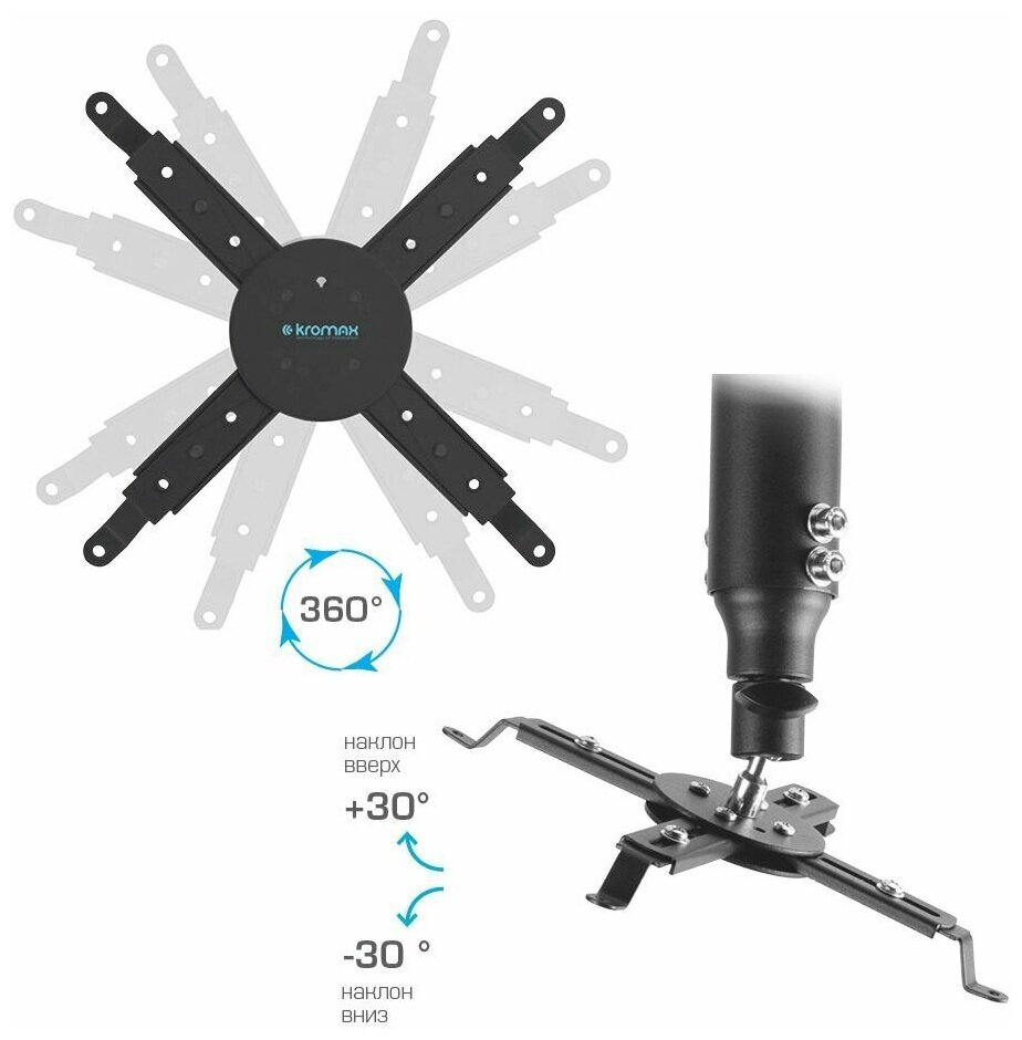 Кронштейн для проектора потолочный Kromax PROJECTOR-100 / до 20 кг / регулировка высота 47-67 см от потолка