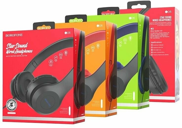 Лучшие цены. BOROFONE BO5 Star sound проводные накладные наушники с микрофоном, аудио штекер 3.5 мм, одна клавиша для управления, кабель 1.2 м 1. Спикер: 40мм. 2. Номинальная мощность: 15mW*2. Максимальная входная мощность: 50mW. 3. Кабель наушников: штекер 3.5 мм, высокоэластичный кабель. 4. Длина кабеля: 1.2м. 5. Микрофон: пульт с микрофоном. 6. Управление: пульт с одной клавишей для управления. Магазины в вашем городе.