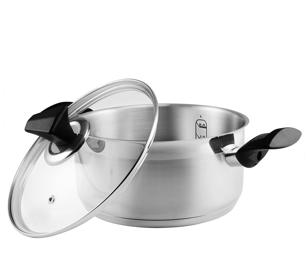 Лучшие цены. Эксклюзивный дизайн дна, разработан в Италии. Материал – высококачественная нержавеющая сталь 18/10. Технология IMPACT - тройное вштампованное термоаккумулирующее дно с прослойкой из алюминия. Ручки – эргономичные бакелитовые ручки не нагреваются, можно мыть в посудомочной машине. Крышка из жаропрочного стекла с отверстием для выпуска пара. Отметки литража для удобства использования. Подходит для всех типов плит, включая индукцию. Магазины в вашем городе.