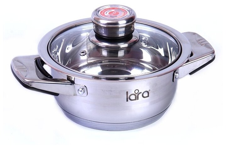 Лучшие цены. Кастрюля Lara Adagio LR02-780Вся серия посуды Adagio имеет терморегулятор на ручке. Корпус из нержавеющей стали с комбинированной полировкой будет отлично гармонировать с интерьером вашей кухни. Корпус из нержавеющей сталиКомбинированная полировкаДатчик температуры на ручкеИндукционное капсулированное дноТолщина стенок - 0.4 ммКрышка из жаропрочного стеклаРучки с пластиковыми ненагревающимися вставкамиЭкологически чистые материалыПодходит для использования на газовых, чугунных, стеклокерамических. Магазины в вашем городе.