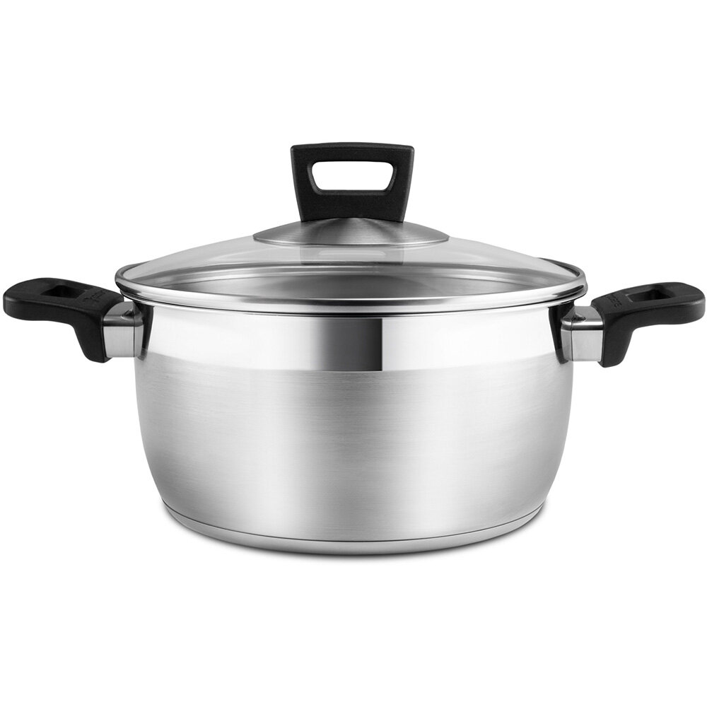 Лучшие цены. Эксклюзивный дизайн дна, разработан в Италии. Материал – высококачественная нержавеющая сталь 18/10. Технология IMPACT - тройное вштампованное термоаккумулирующее дно с прослойкой из алюминия. TurboHeat - плавный переход от дна к стенкам повышает надежность крепления дна, обеспечивает быстроту нагрева. Ручки – эргономичные бакелитовые ручки не нагреваются, можно мыть в посудомочной машине. Крышка из жаропрочного стекла с отверстием для выпуска пара. Отметки литража для удобства использования. Магазины в вашем городе.
