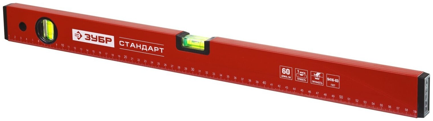 Уровень / правило Уровень ЗУБР ″стандарт″ коробчатый, 2 противоударные ампулы, 60см