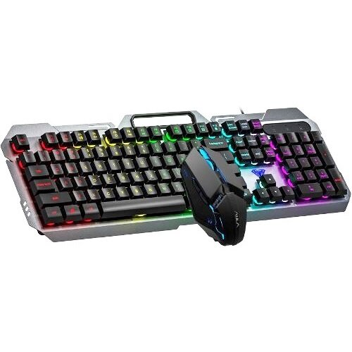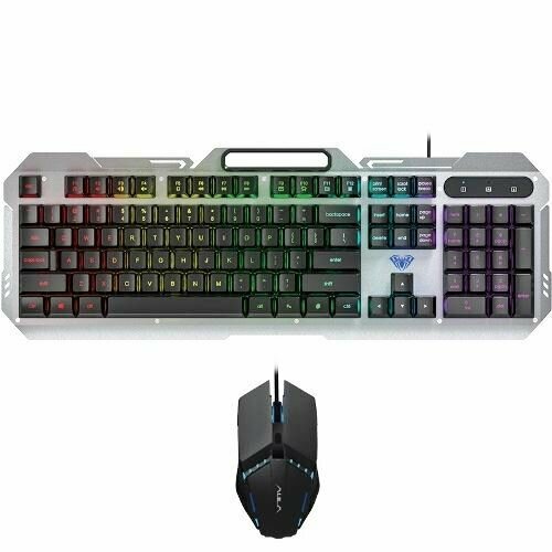 Клавиатуры Клавиатура и мышь AULA F2023 Combo 104кл. 6кн. игровой комплект с подсветкой - серебристый 1.65м