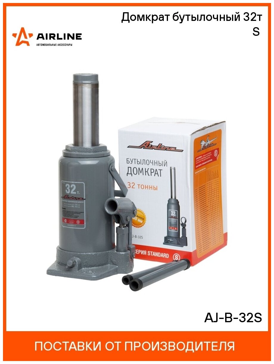 Домкрат бутылочный s (min - 285 мм, max - 465 мм) 32т , airline, aj-b-32s