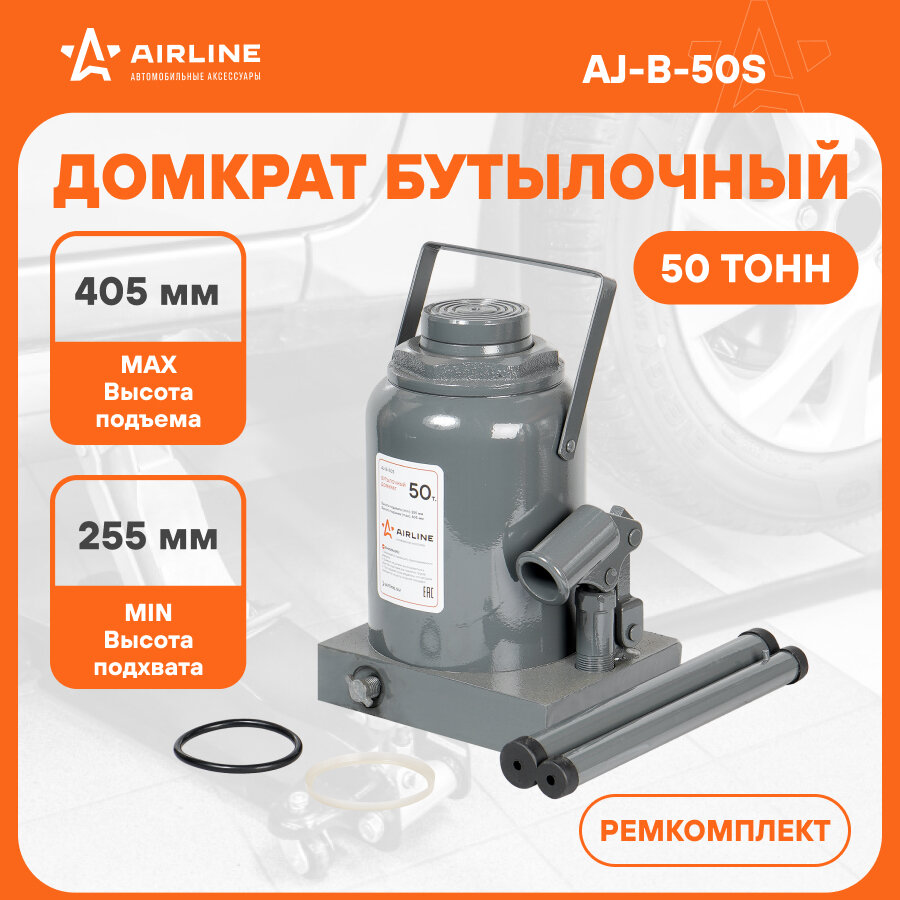 Домкрат бутылочный 50т S (MIN - 225 мм, MAX - 405 мм) (AJ-B-50S) AIRLINE AJ-B-50S | цена за 1 шт