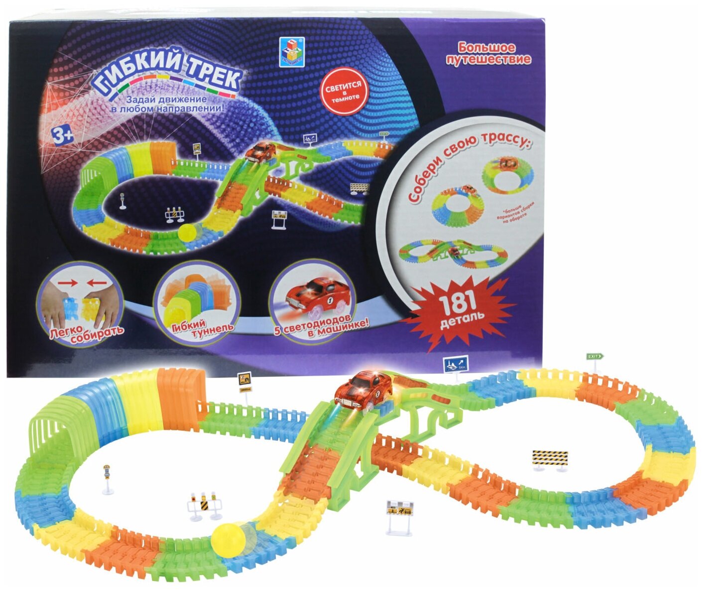 Автотрек / железная дорога Большое путешествие, 1Toy (гибкий трек, 181 деталь, Т13199)