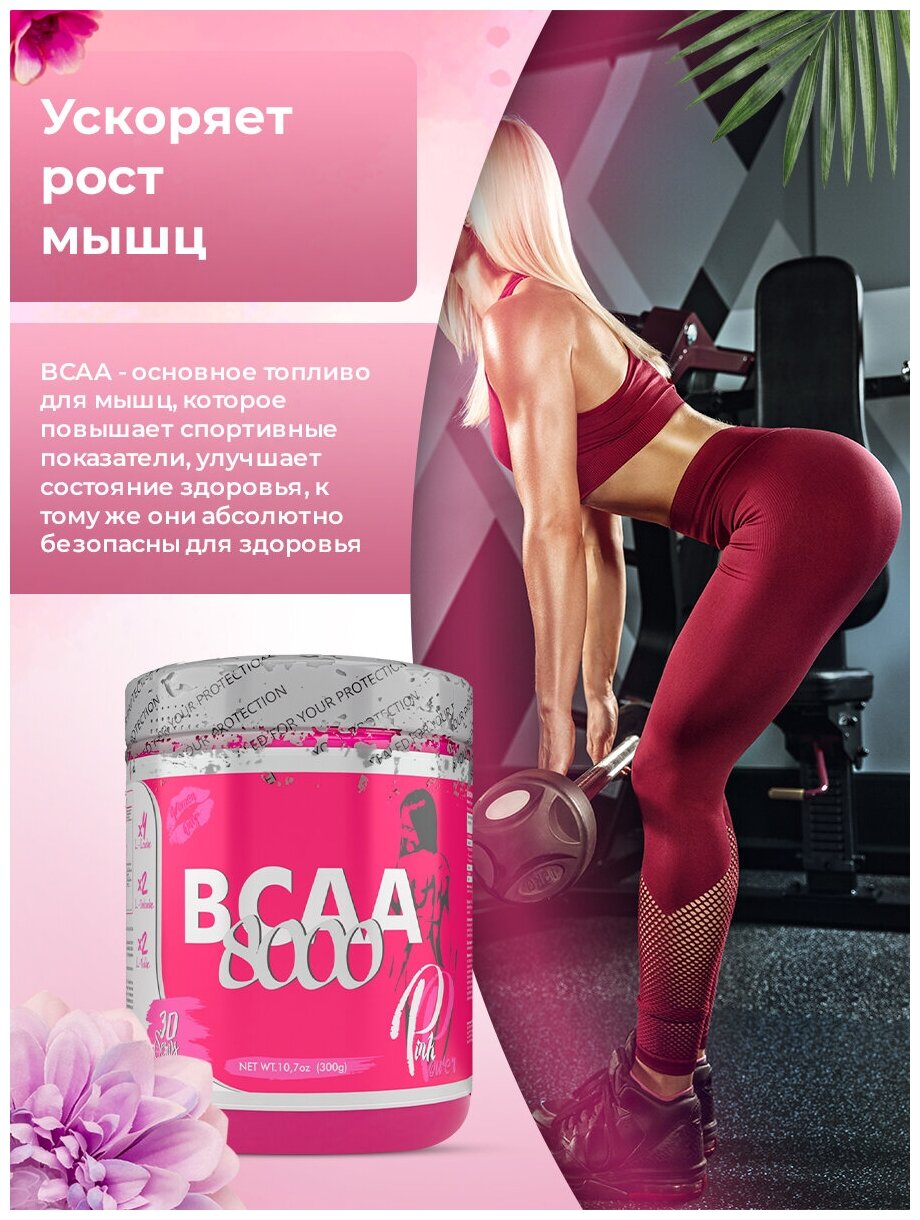Аминокислоты PinkPower BCAA 8000, 300 гр, Клубника-Гуава (экстази) (ВСАА 2-1-1)
