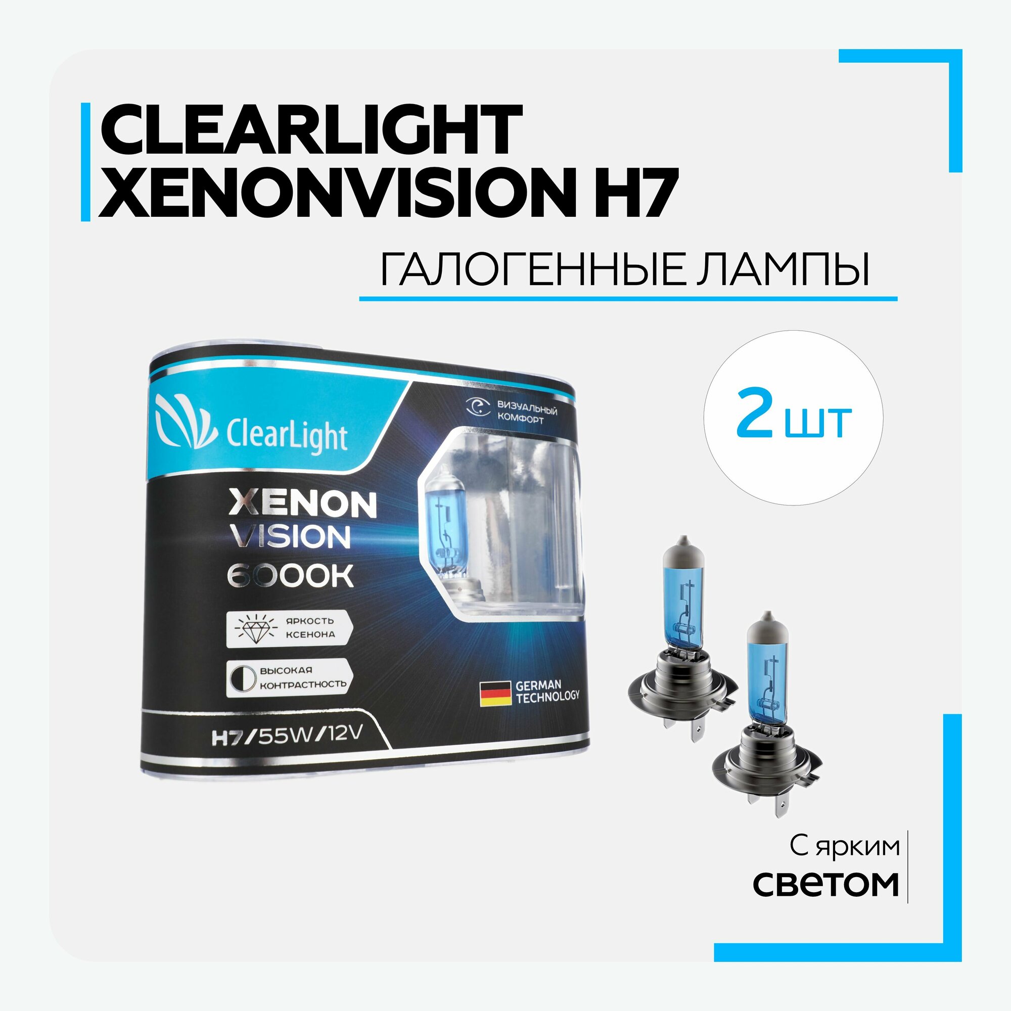 Лампа галогенная CLEARLIGHT XENONVISION 12V H7 55W 2 шт MLH7XV