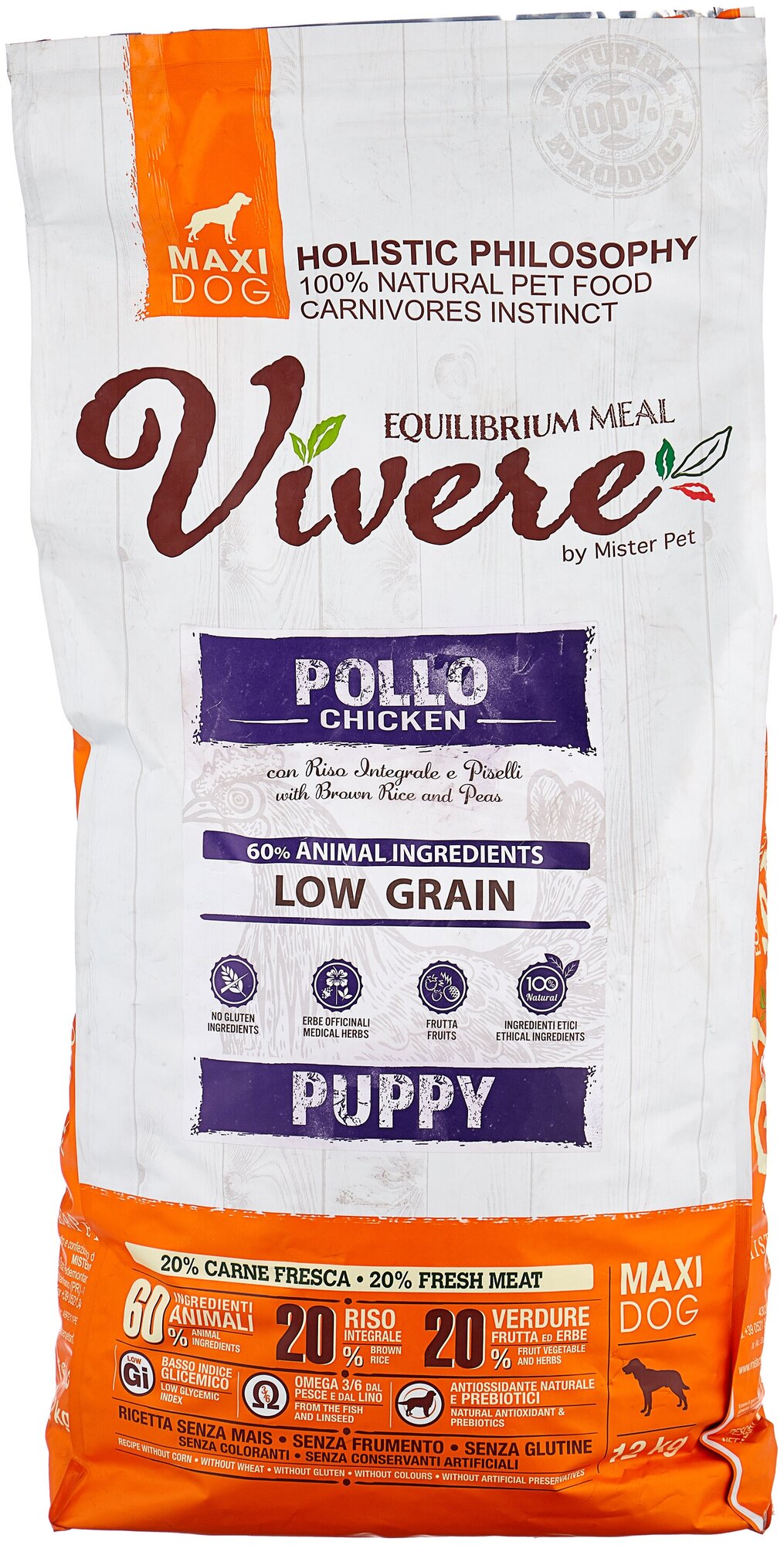 Vivere корм для щенков крупных пород, низкозерновой, курица 12 кг