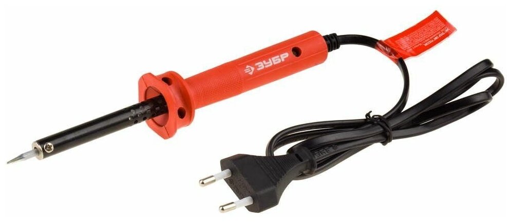 Лучшие цены. Электропаяльник ЗУБР, арт. 55400-80_z01, серия Мастер, применяется для пайки радиодеталей и проводов. Электропаяльники торговой марки ЗУБР изготовлены из современных долговечных материалов. Высококачественный нагревательный элемент обеспечивает быстрый нагрев рабочей части и длительный срок службы инструмента. Особенности, преимущества : -Эргономичная пластиковая рукоятка; -Жало с защитным покрытием; Технические характеристики и функции: : -Мощность: 80 Вт -Напряжение: 220 В -Форма жала: Клин -Тип рукоятки. Магазины в вашем городе.