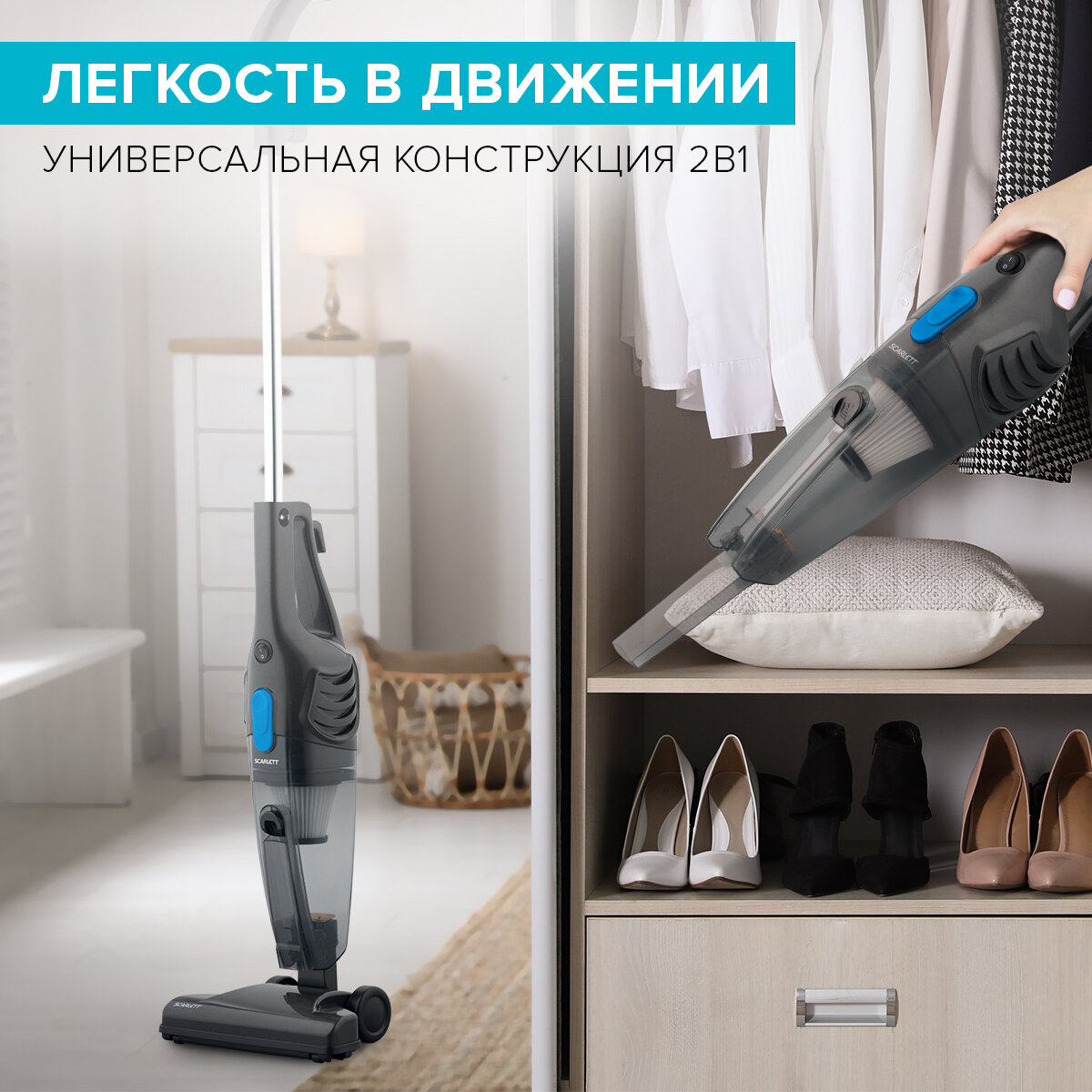 Ручной пылесос Scarlett SC-VC80H16, 600Вт, синий/серый 3 740 ₽ Подробнее