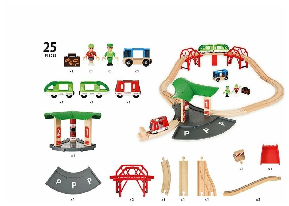 Автотрек / железная дорога BRIO Набор с автовокзалом 2 мостами и ж/д 33627