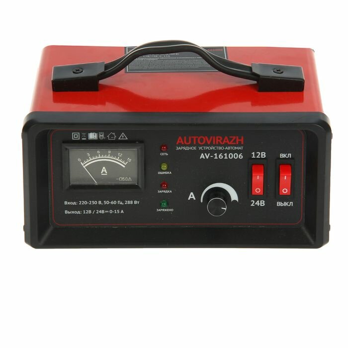 Зарядное Устройство Для Акб (Автомат, 0-15А,180Ач, 12/24В,Стрелочн.индик.) AUTOVIRAZH арт. AV-161006