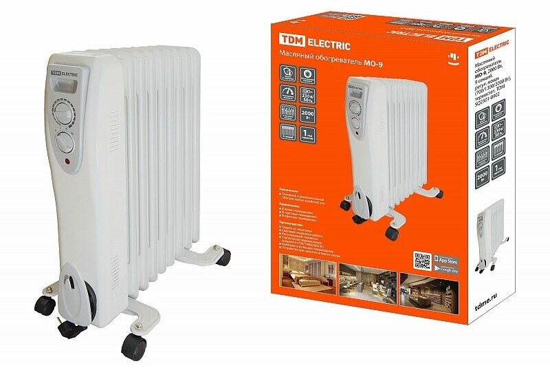 Масляный обогреватель МО-9, 2000 Вт, 9 секций, регулировочная мощность (700/1300/2000 Вт), термостат, TDM (1 шт.)