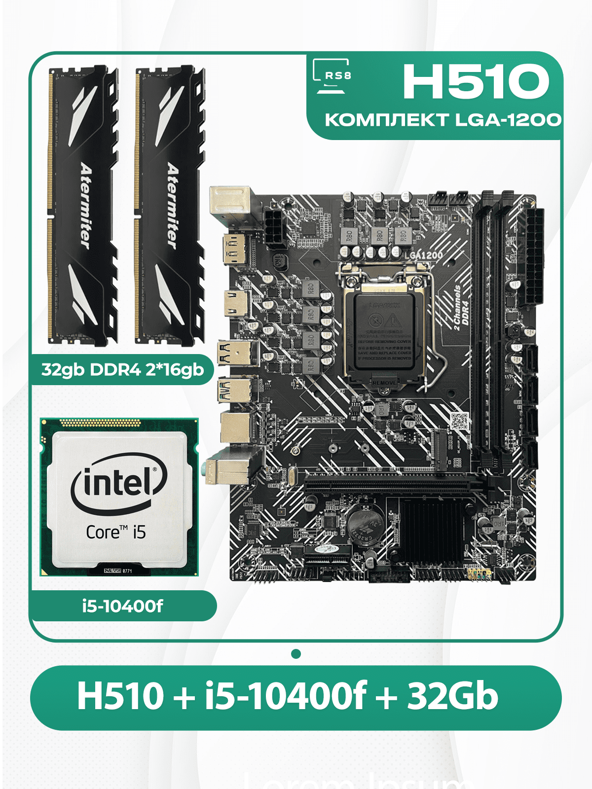 Персональные компьютеры Комплект материнской платы INTEL LGA1200: RuiTech H510 OEM + i5-10400f + DDR4 32Gb