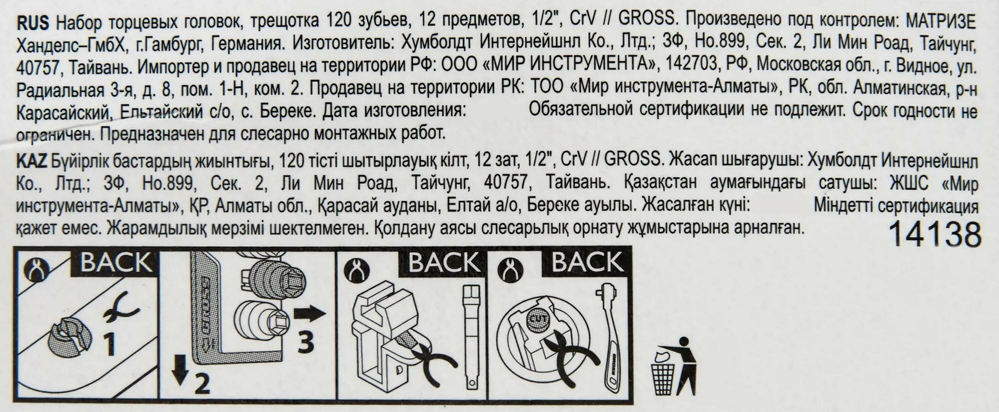 GROSS Набор торцевых головок 12 предметов GROSS 14138