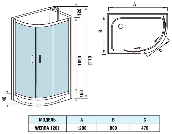 Душевая кабина WeltWasser WW 500 WERRA 1201 L Левая 120х90х217 см .