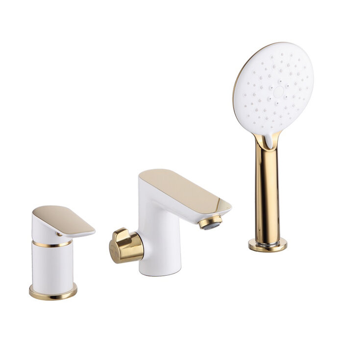 Лучшие цены. Вес нетто, кг - 2.69 Вес брутто, кг - 3.25 Смеситель на борт ванны из коллекции Cloud – скромное очарование функциональной роскоши. Элегантное сочетание белого и золотого цветов создает стильный продукт, который подойдет к интерьеру в современном и классическом стиле. Монтаж на борт ванны позволяет установить смеситель и его отдельные элементы в наиболее подходящем с точки зрения дизайна месте. В комплекте трехрежимная лейка для душа и шланг из нержавеющей стали длиной 2,0 м с защитой от перекручивания. Магазины в вашем городе.
