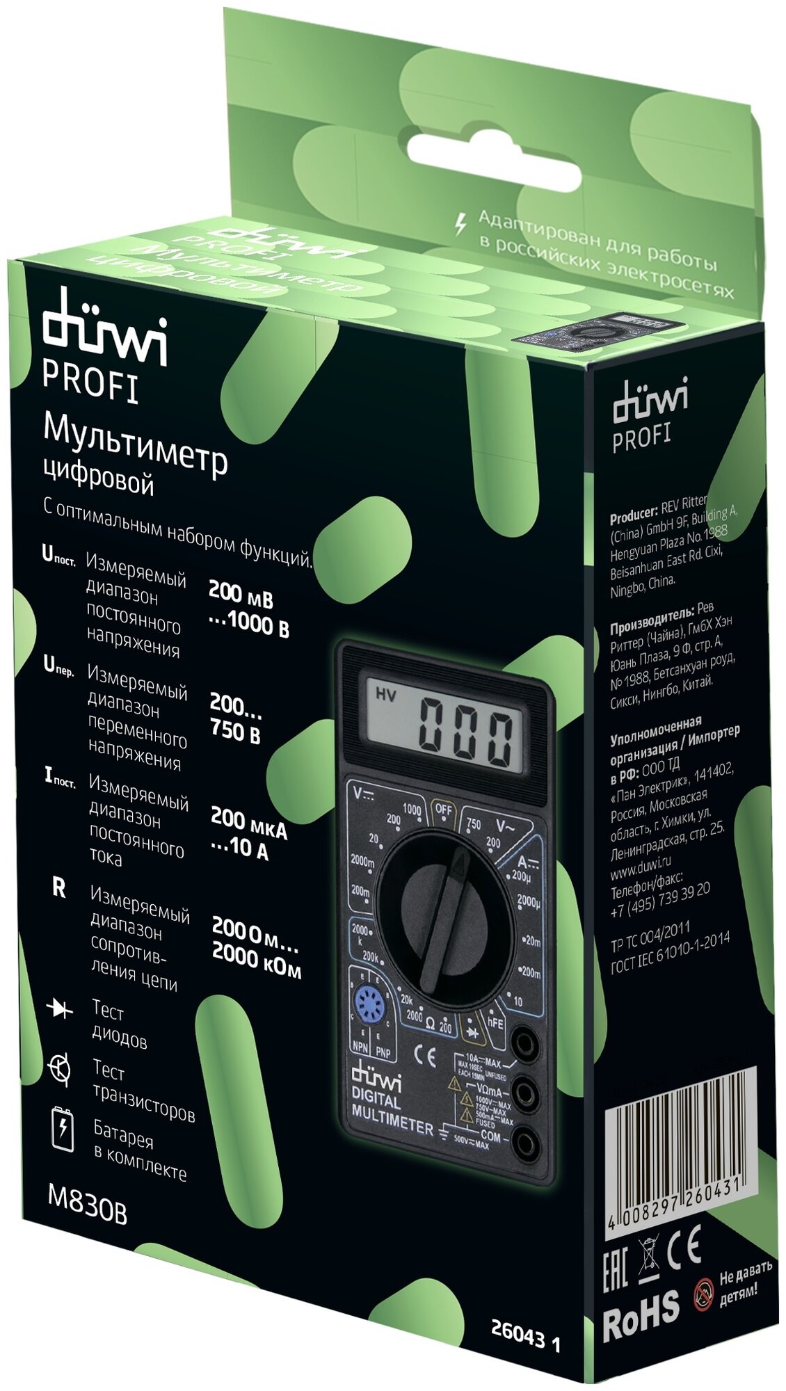 Мультиметр / вольтметр Мультиметр DUWI 26043 1 M830B PROFI Мультиметр портативный цифровой 1178332