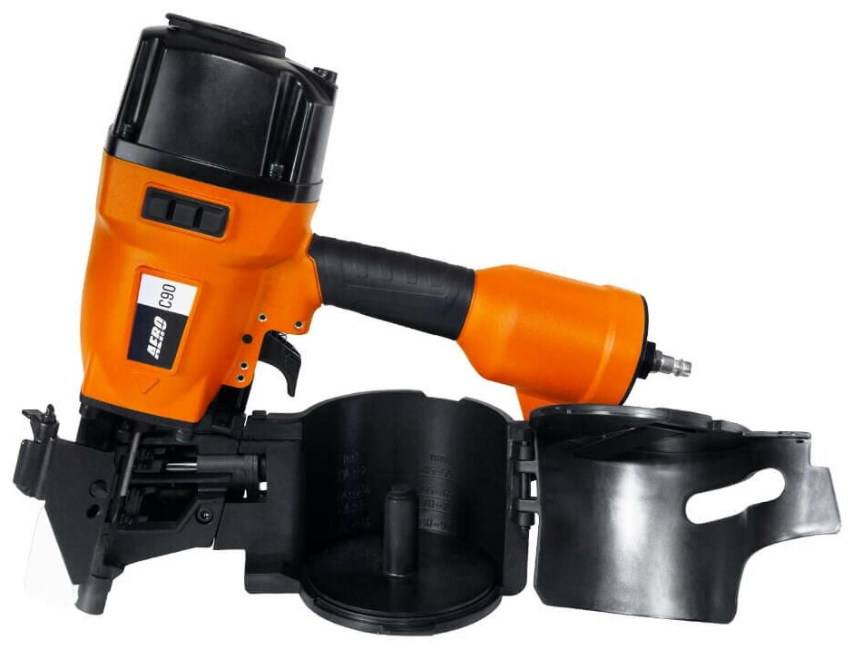 Лучшие цены. AERO C90 ;- мощный профессиональный ;инструмент для надежного забивания гвоздей в любую породу дерева. Рекомендован к применению при изготовлении и ремонта паллет (поддонов) и других изделий из дерева, таких как тара, ящики и упаковка. Предназначен для монтажа мягкой черепицы, кровельной дранки, обустройства заборов и черновых полов.Контактный предохранитель защитит от случайного выстрела.Удобный спусковой крючок обеспечит быструю работу.Инструмент использует барабанные гвозди длиной от 40 до 90 мм. Магазины в вашем городе.