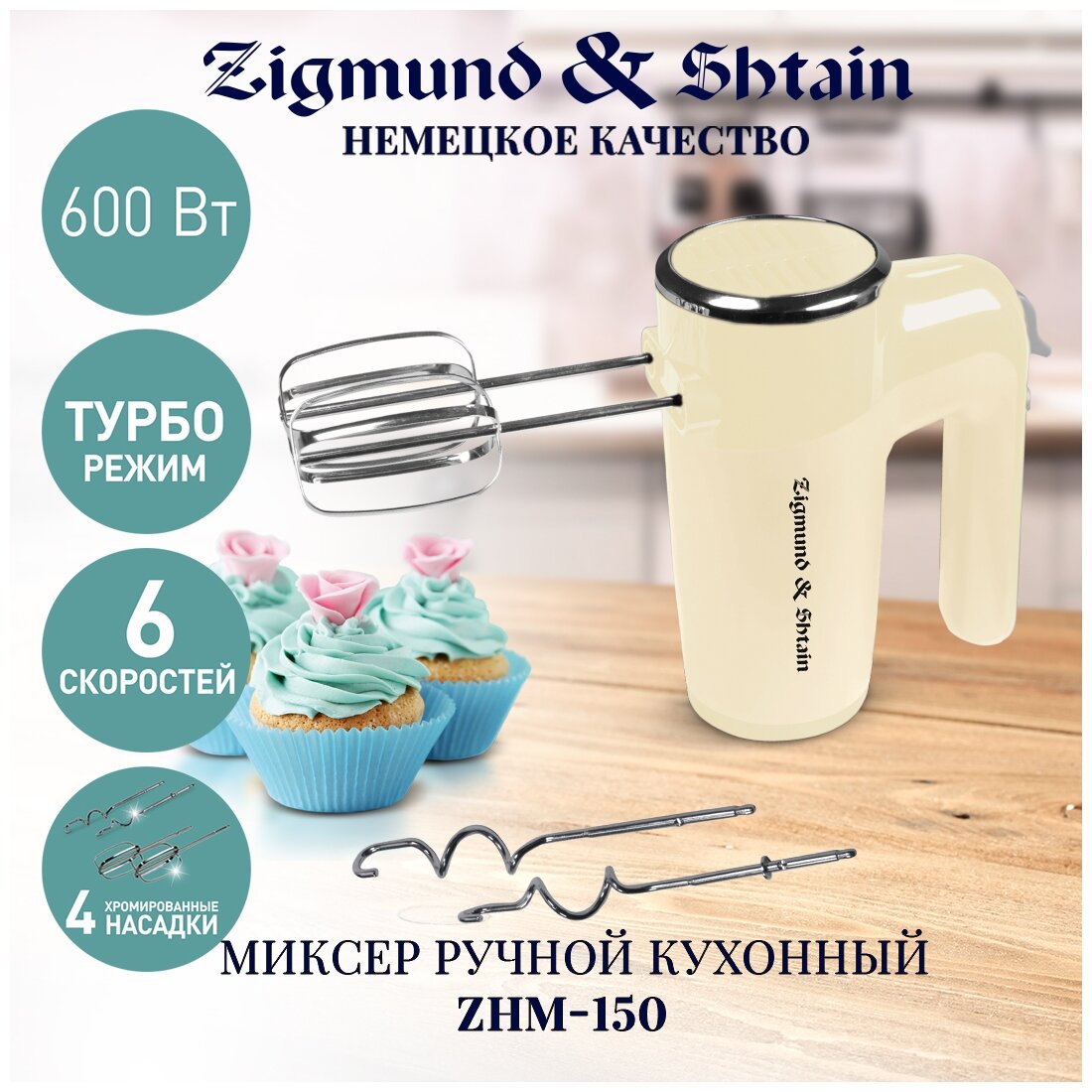 Миксер ручной кухонный 600 Вт, кремовый, Zigmund & Shtain ZHM-150