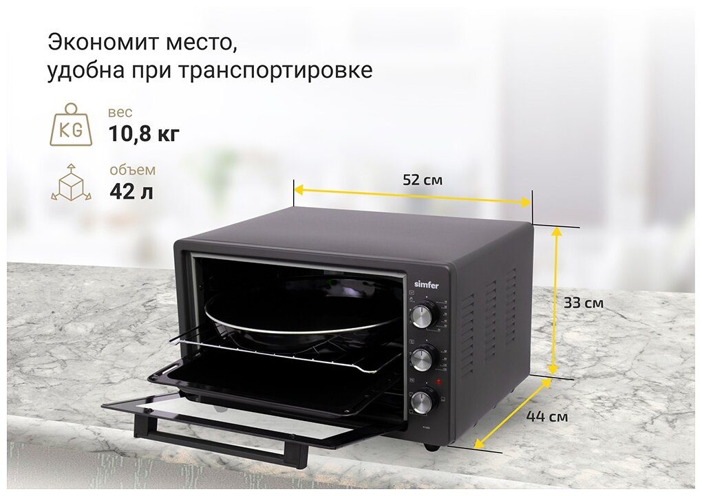 Мини-печь Simfer M4200 серия Albeni Plus, 3 режима работы, 2 противня